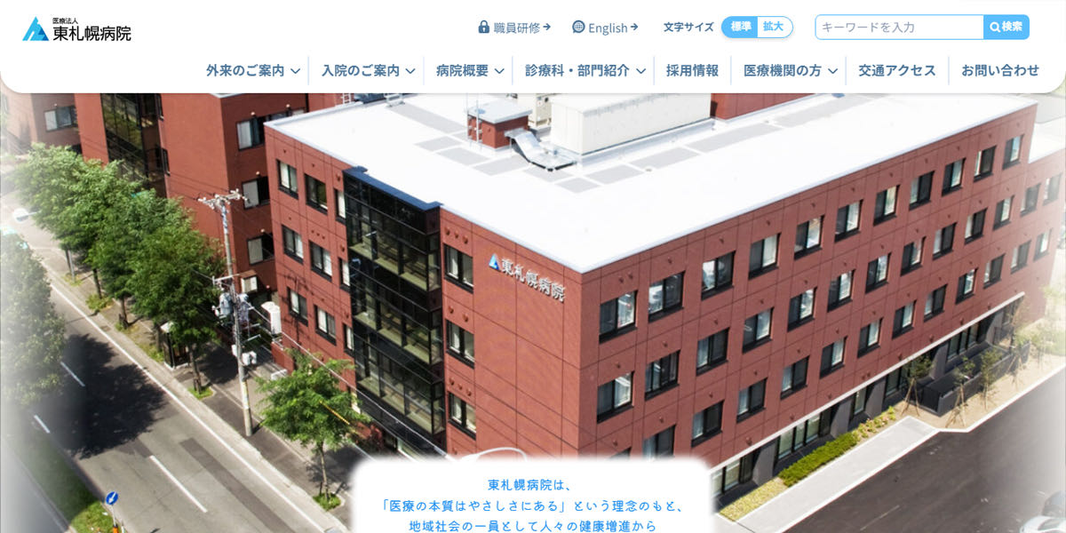 医療法人東札幌病院の公式ウェブサイトをリニューアル。患者様にとって分かりやすい情報設計と、医療機関としての信頼感を両立したデザインを実現しました。